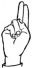 На ћирилици написано КСЕНИЈА ЈОВАНЧЕВИЋ састоји се из 17 слова [?]. Исписано ћириличном једноручном азбуком за глувонеме:
